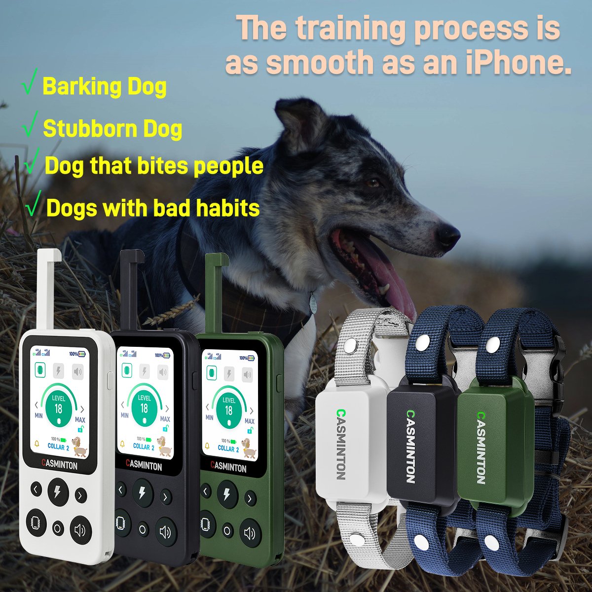 CASMINTON CRS01 Pro Dog Training Collar with LCD Display for Effective Training